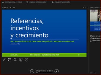 O PowerPoint 2013 divide o modo de apresentação em duas visualizações diferentes: uma para a audiência e a outra, para o apresentador. Além da apresentação em si, você também pode ver uma lista de itens e outros detalhes na tela do apresentador. Em tablets, é possível navegar pelos slides por meio de gestos, desenhar sobre eles com uma caneta digitalizadora ou usar um ponteiro virtual.